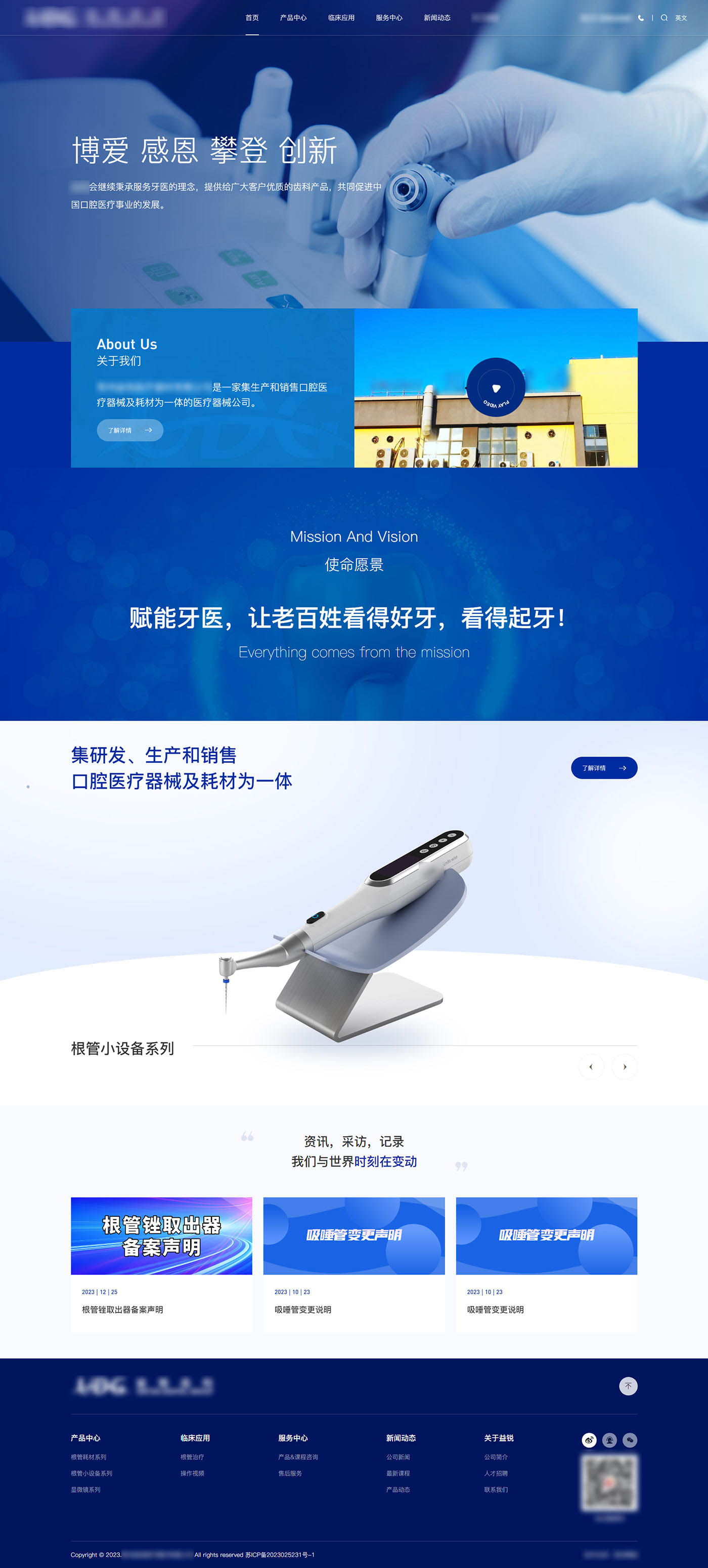 網(wǎng)站以“博愛 感恩 攀登 創(chuàng)新”為精神內(nèi)核,錨定“服務(wù)牙醫(yī)、普惠百姓”的使命愿景,明確“賦能牙醫(yī),讓老百姓看得好牙,看得起牙”的價(jià)值主張。通過品牌理念與使命愿景的雙層表達(dá),既強(qiáng)化企業(yè)“專業(yè)醫(yī)療”的行業(yè)屬性,又傳遞“普惠民生”的社會(huì)價(jià)值,為用戶構(gòu)建信任基礎(chǔ)。